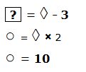 This question consists of three equations. In each equation, the sum on both sides of the equal sign must be identical. Since we are trying to find the value of the '?' sign, we must first find out the number represented by the diamond in the first equation. Therefore we need to start with the third and second equations, to discover the value of the diamond.