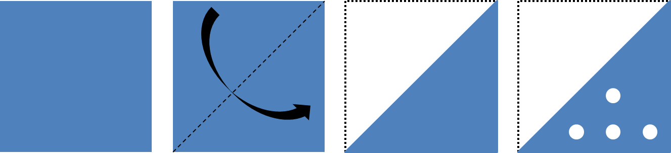 Imagine how the paper looks after it has been folded and then punched with a hole. Select the answer that shows what the unfolded paper would look like with the holes in the correct positions